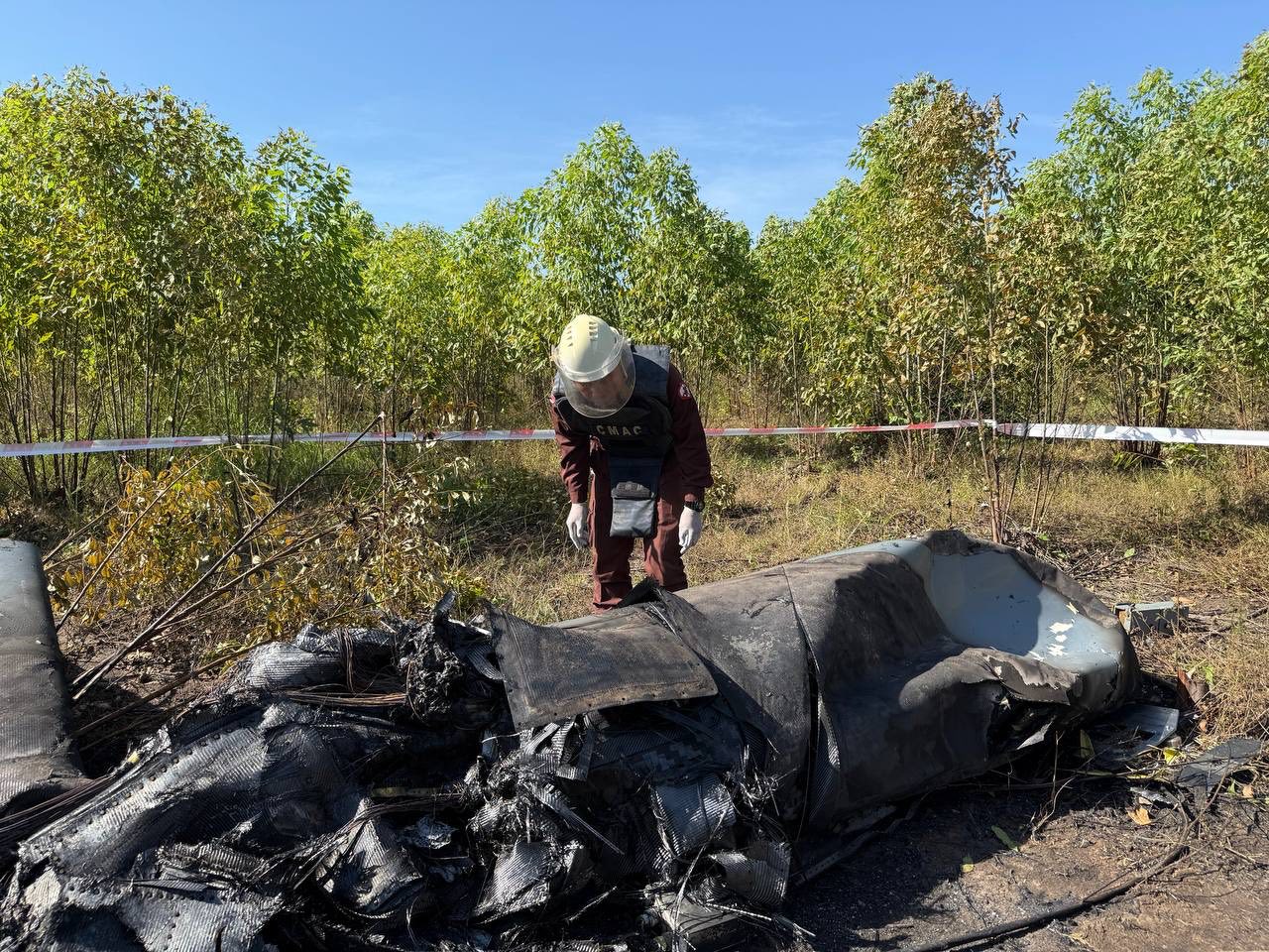 Phía Campuchia kiểm tra xác chiếc UAV bị rơi. Ảnh: Phnom Penh Post