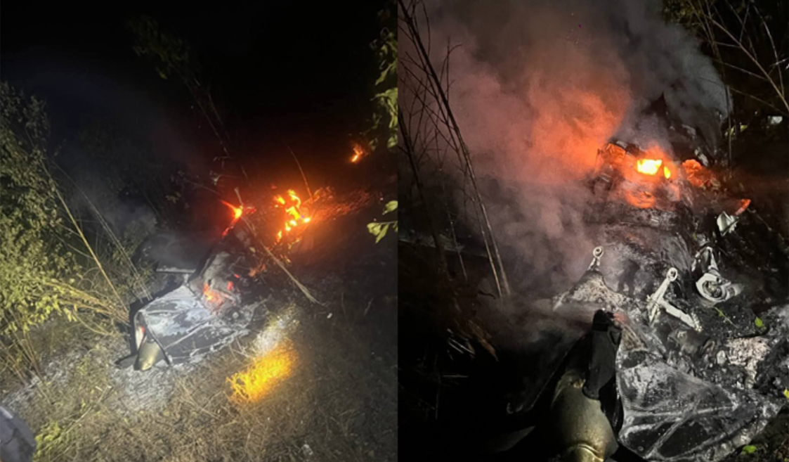 Ảnh được cho là UAV trinh sát Thái Lan bốc cháy sau khi rơi xuống TP Poipet - Campuchia. Ảnh: Khmer Times